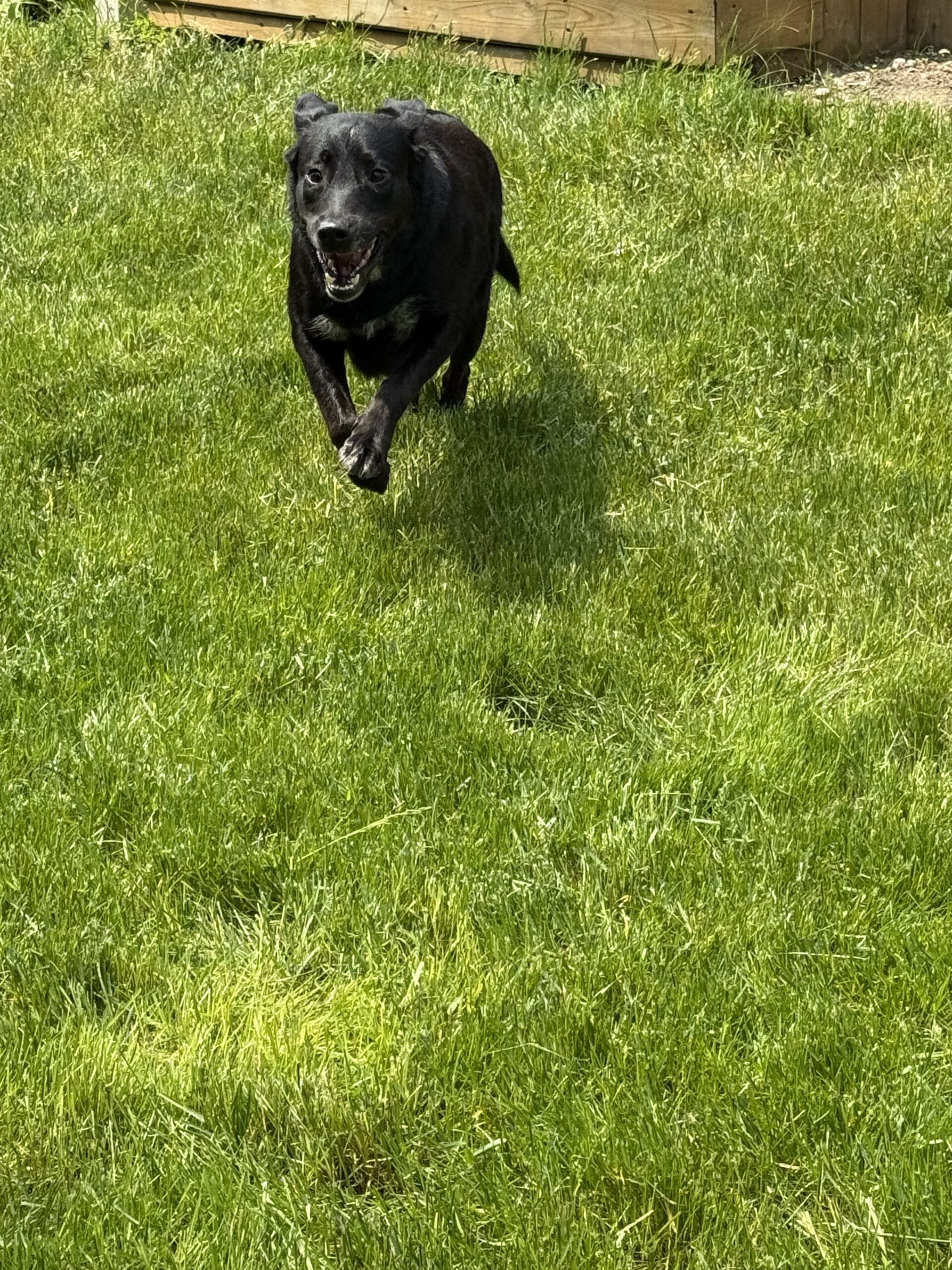 She is allowed on the furniture and enjoys being cuddled on the couch or lazyboy.  She sleeps on a doggie bed at night. As she has some herding breed in her,  she would have a prey drive so a fully fenced yard is best so she wont't go chasing after the neighbourhood cats or squirrels.